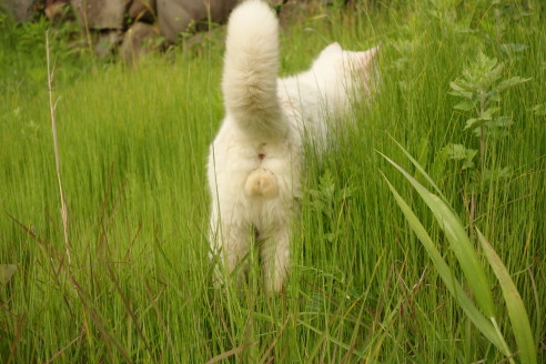 最近のシロクンのキンタマは夏毛に生え変わりつつあるようで