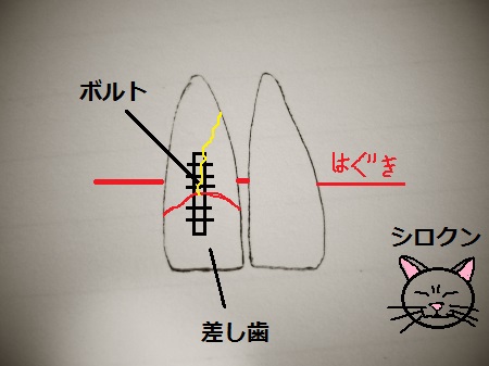 上の画のように根元を土台としてボルトで差し歯を固定できたのだ。