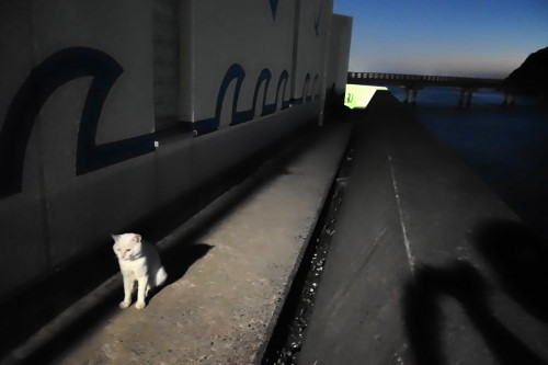 浜に下りる手前の段差に腰掛けてM吉とお話してると