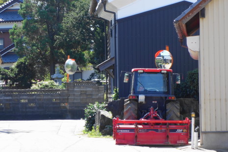 あそこのトラクターのとこのミラーなんか