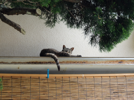 足元にも居た! こっちは土台が御影石だけど石の冷たさで涼んでいるようだ