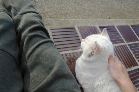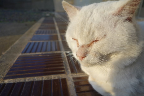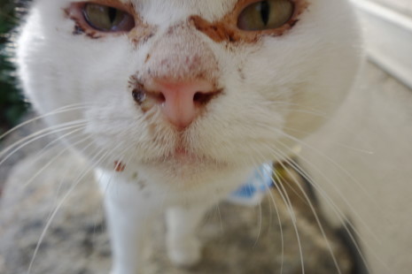きったない猫だなあシロクン 目ヤニも酷いし また鼻水でてるぞ