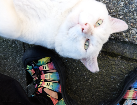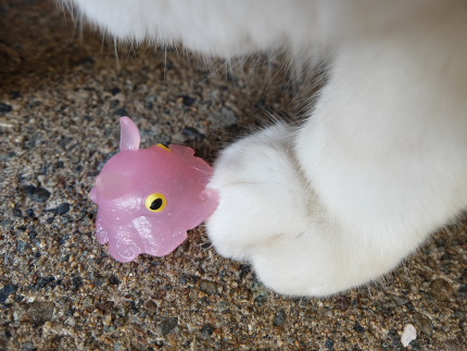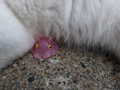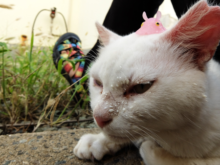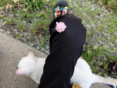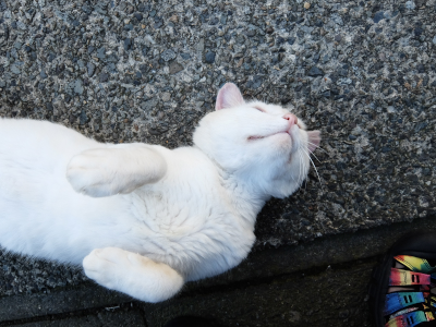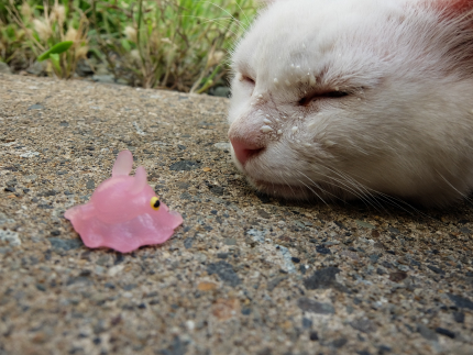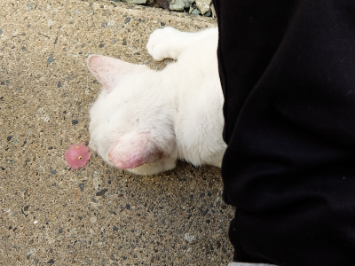 ネコちゃんの牛乳のんでスヤスヤのシロクンを