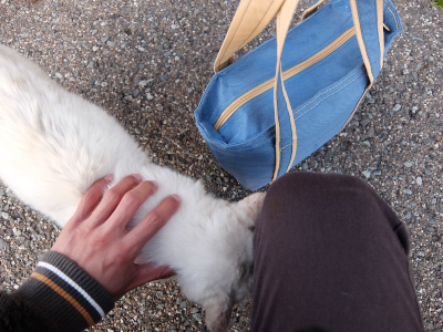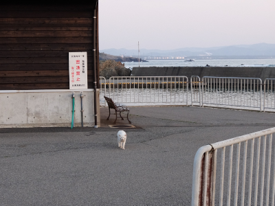 あれ? 漁具小屋の裏に居るなんて珍しいなシロクン?