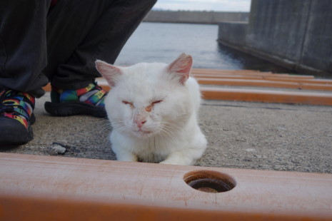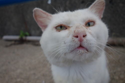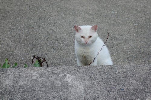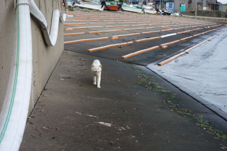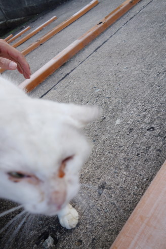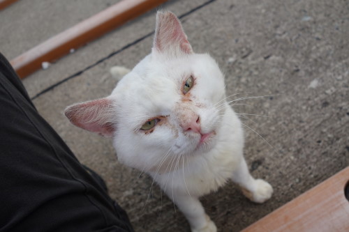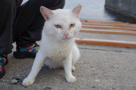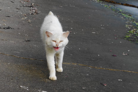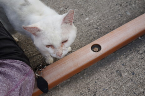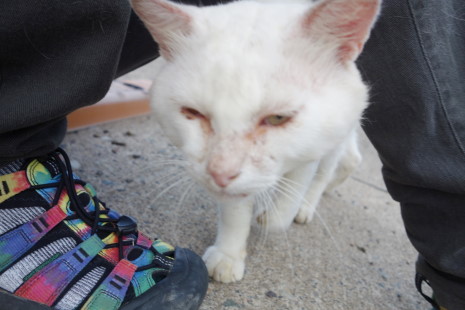 近づくとニャーニャー言いながらこちらに歩み寄ってくるシロクン