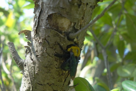 この穴の大きさはアブラゼミに違いないのこと