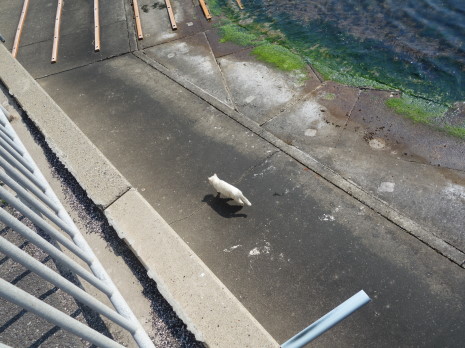 あっ! シロクンが春の港をお散歩してる! シロクーーンどちらまでーーーー?!