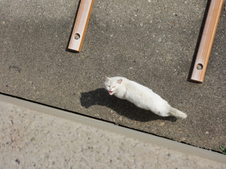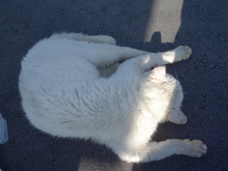まだ毛皮がモコッてるシロクンには暑いみたいだ