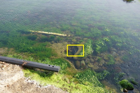 海際で そこの黄色四角のトコになんか居るのよ ウミウシかな?