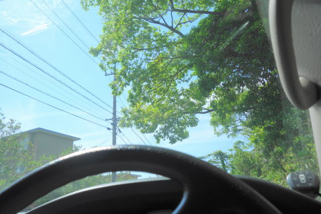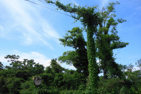 カーブミラーも今まさに背後から覆い被さられる勢い