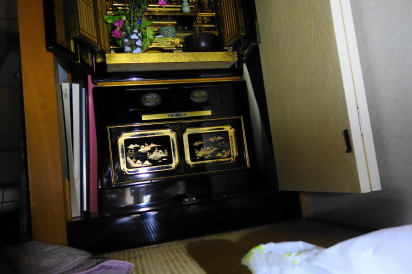 布団に仰向けになって右向くと 仏壇がダーン!とこんななんだけどね涼しいんだよな
