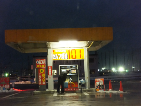途中にガソリンスタンドで給油す