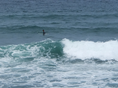 板を放り投げてホップステップジャンプで波打ち際に飛び込んだのだけど