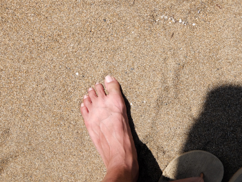 砂浜の深部まで足を潜り込ませて火傷を回避するという技もあるが