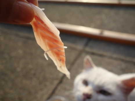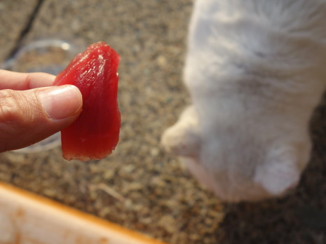 シロクンにお刺身を見せると凄く凶暴になる