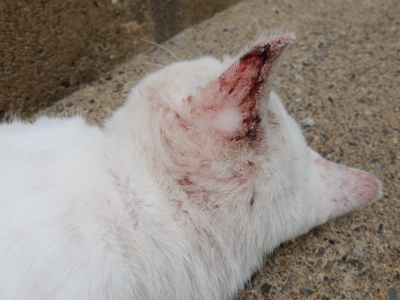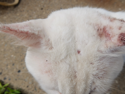 後頭部側面に血液の跡が残ってるじゃないか..........