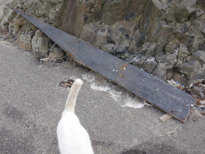 すると! おっ! シロクンなんか板っきれが漂着してるぞ!