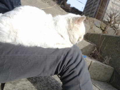 またしても足元にまるまっていたシロクンを抱えあげて膝の上に乗せてみたぞ