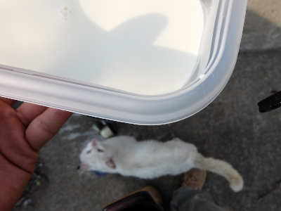 さあ! シロクンおまちかねのネコちゃんの牛乳だ