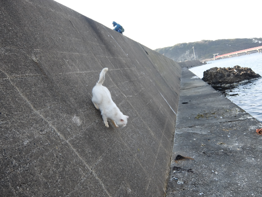 コソッと突堤の下の段からシロクンに近づいてみゆ