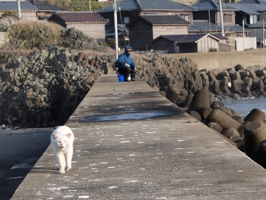 シロクンは釣人の所で立ち止まり