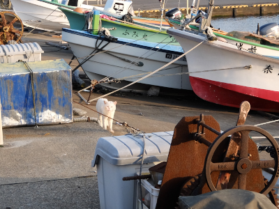 また港の船の下に戻って行った