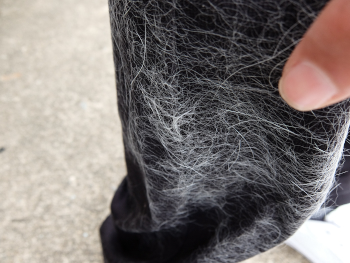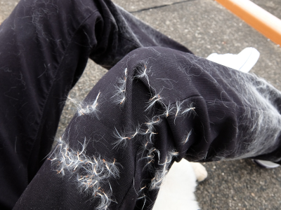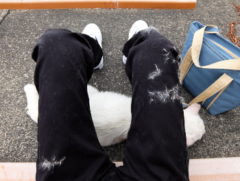 ズボンの膝から下はシロクンの抜毛で完全に終わったんだけど