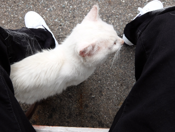 たった一度シロクンが足に擦り寄っただけで この有り様