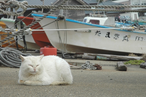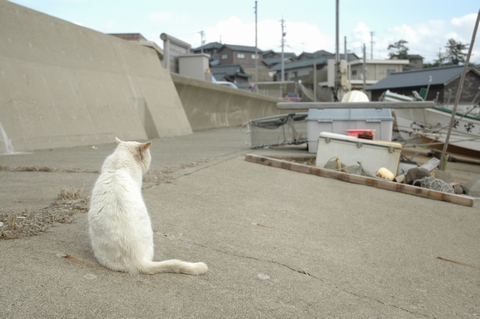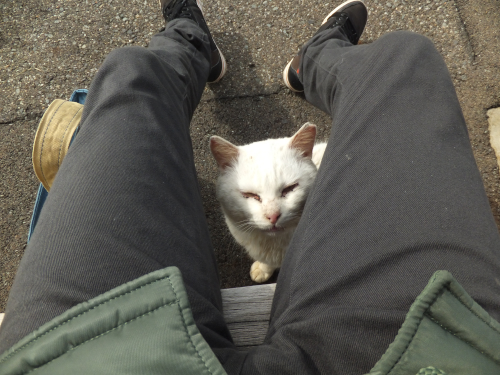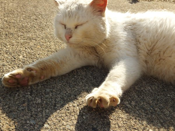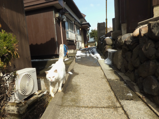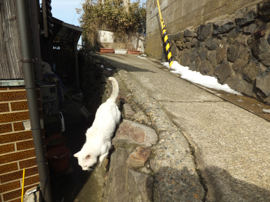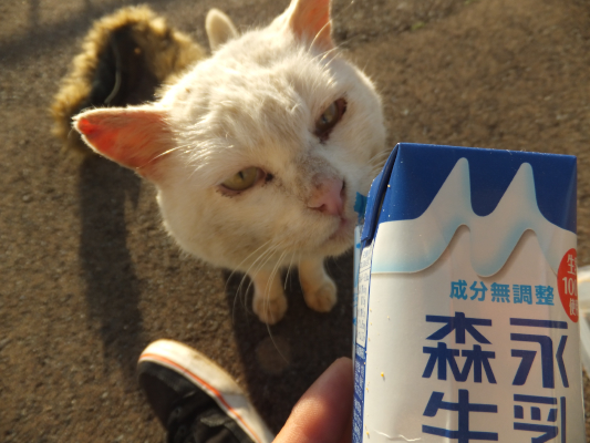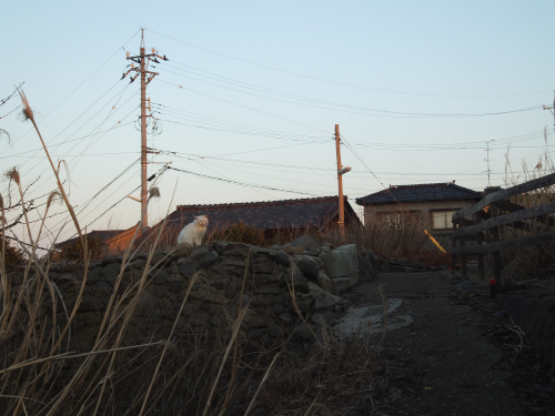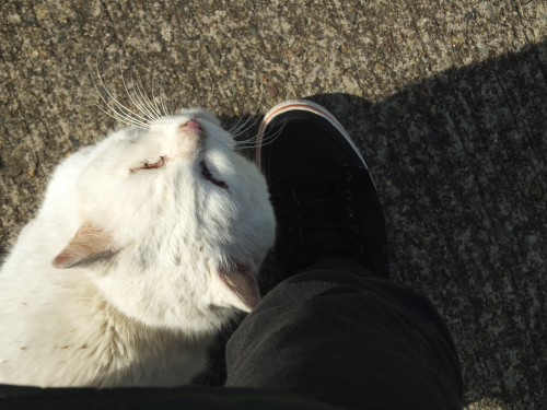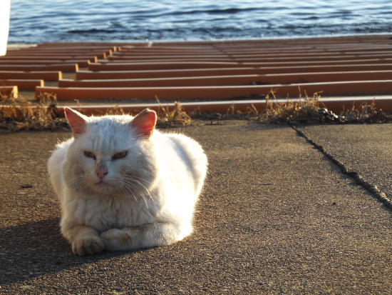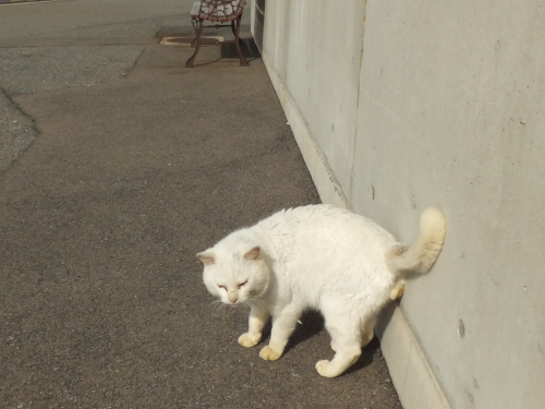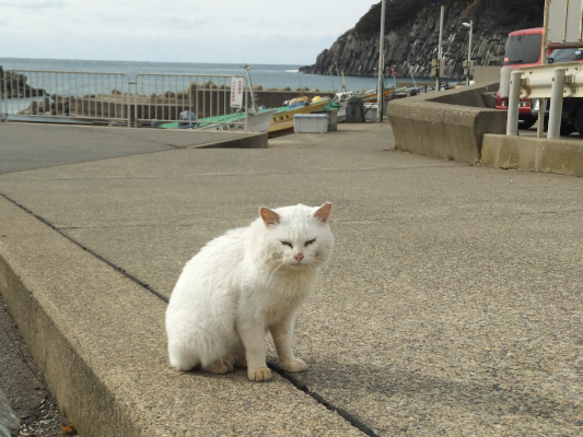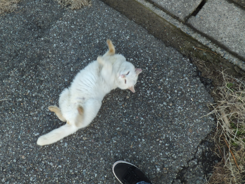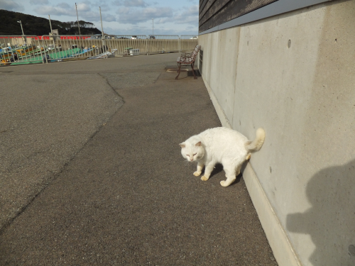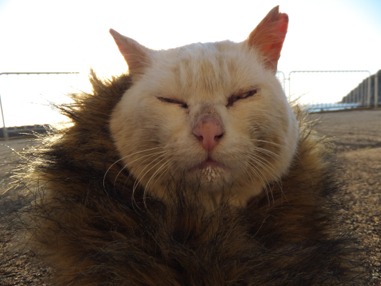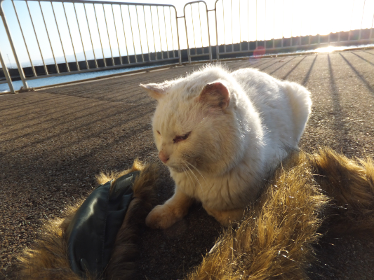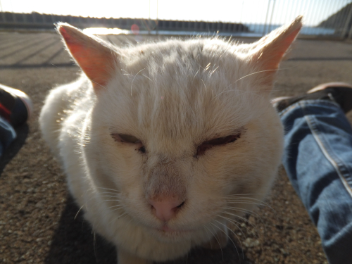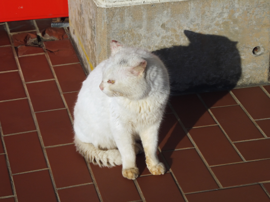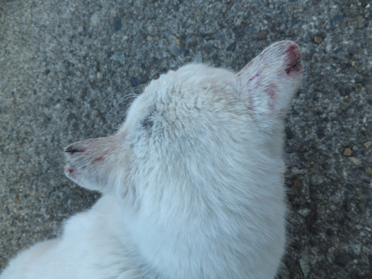 島横漁村の茶白子猫も耳の付け根を怪我してたし