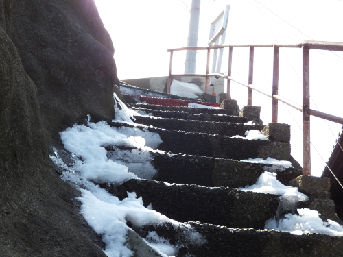 こういう寒い日に何度も急な坂道階段を上がったり下りたりするのは