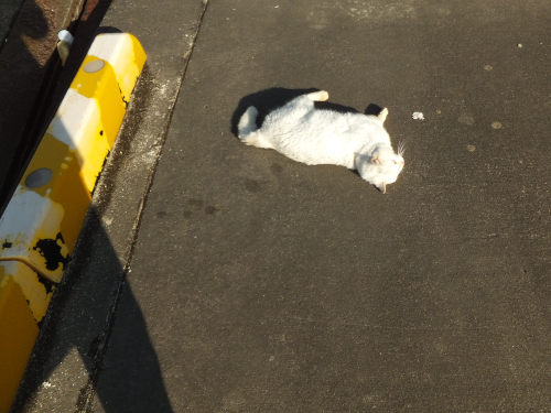 バタッ!と倒れるシロクン まるで行き倒れみたいだ